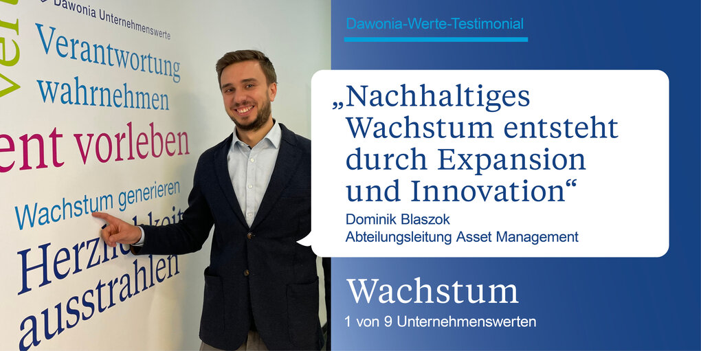 Dieses aufregende, manchmal herausfordernde, aber stets lohnende Streben nach persönlicher Weiterentwicklung ist einer der Eckpfeiler unserer Unternehmenskultur. Wir definieren persönliches Wachstum daher als Motor, der uns antreibt, uns weiter verbessern lässt und letztlich den Weg zu unseren Träumen und Zielen ebnet. Aus diesem Grund gehört Wachstum neben Verantwortung, Vielfalt, Engagement, Erfahrung, Geborgenheit, Herzlichkeit, Zukunft und Agilität zu den fundamentalen Unternehmenswerten von Dawonia.