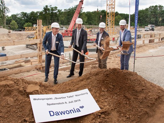 Nürnberg, 9. Juli 2019. Das Wohnbauprojekt mit dem Namen „Quartier Tafel“ geht nun in die Bauphase. Die Dawonia, eines der größten Wohnungsunternehmen Süddeutschlands, wird auf dem zwei Hektar großen Areal rund 380 Wohnungen errichten. Der Anteil von einkommensorientiert geförderten Wohnungen (EOF-Wohnungen) wird bei 40 Prozent liegen. Um nachhaltig eine gute Wohnqualität sicherzustellen, werden alle Wohnungen mit hohen energetischen Standards und zeitgemäßen Grundrissen errichtet. 2022 werden die Bewohner in ihre neuen Wohnungen einziehen können.